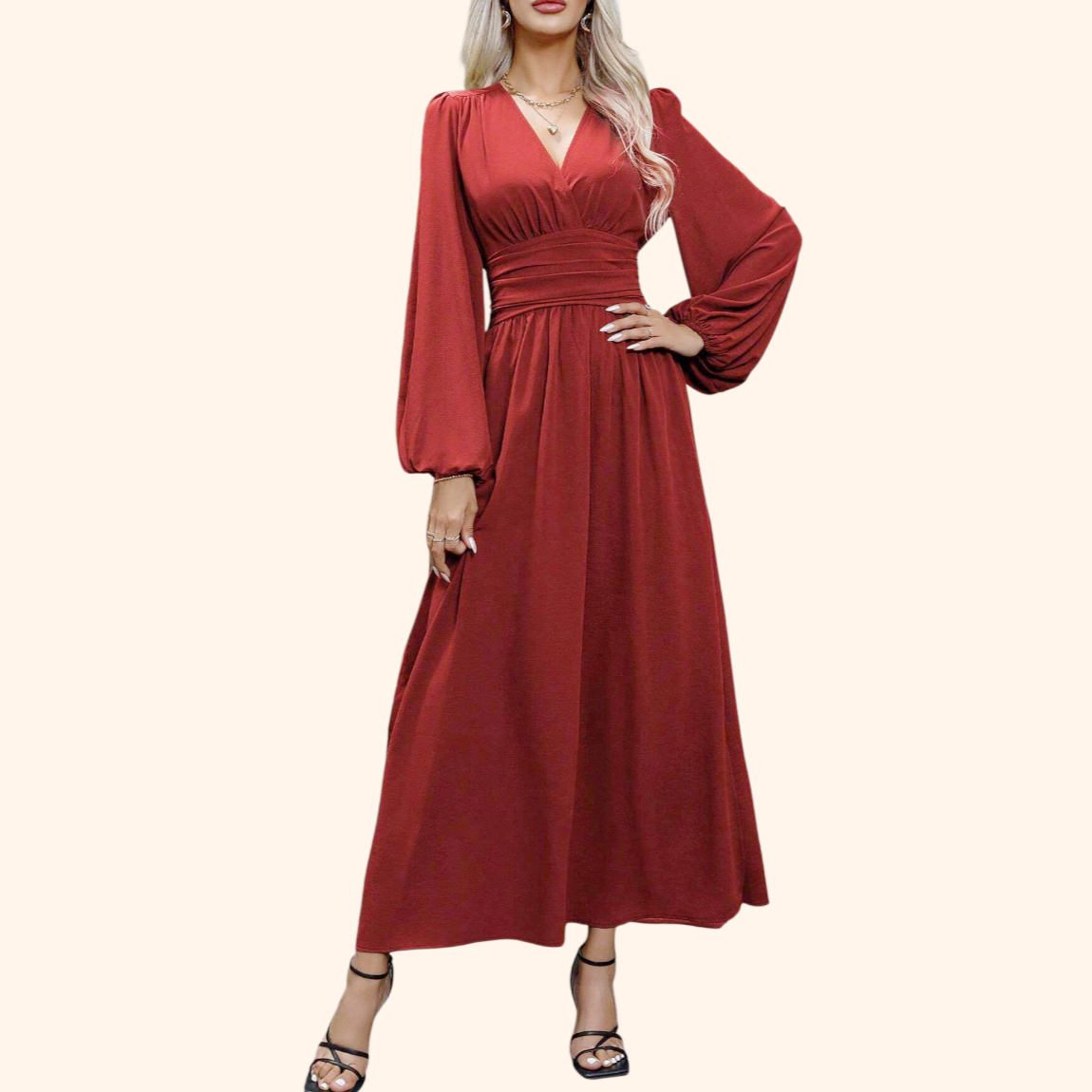 Vestido elegante de mujer con escote en V y abertura alta