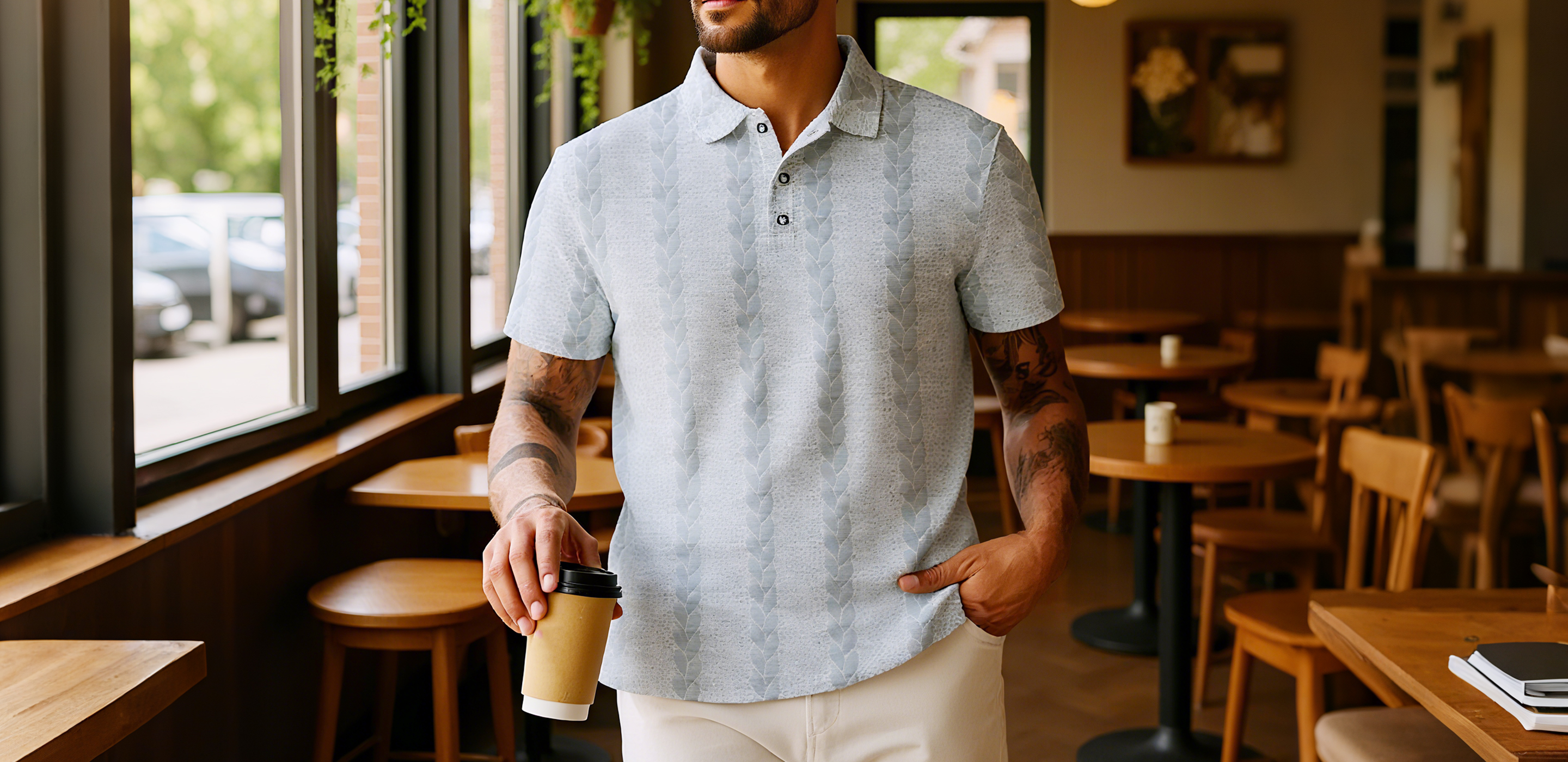 Polo de hombre sencillo y de color sólido con botones y tejido jacquard