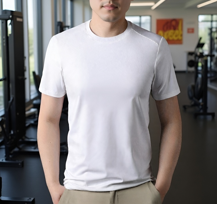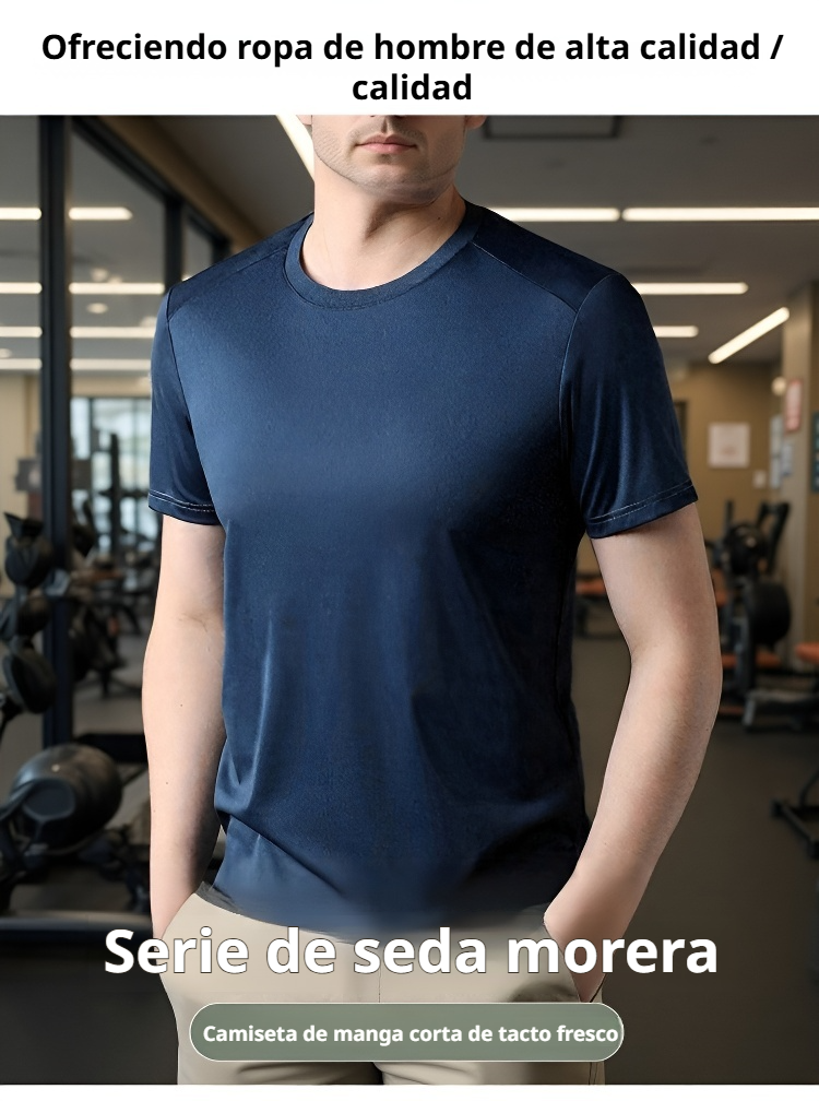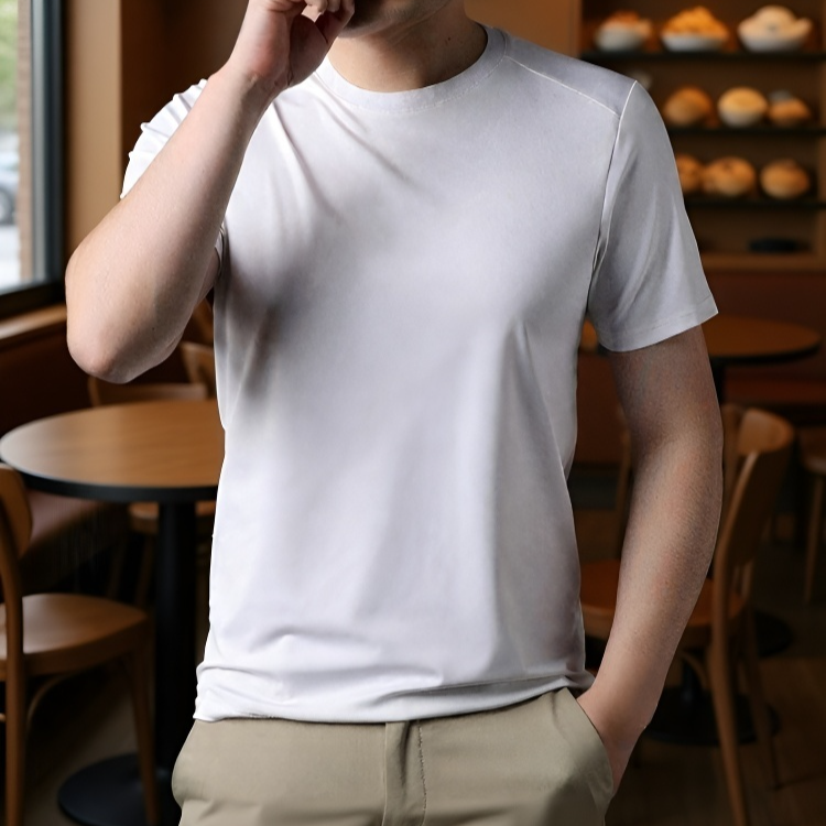 T-shirt masculina de verano, color sólido, tela fresca y antibacteriana
